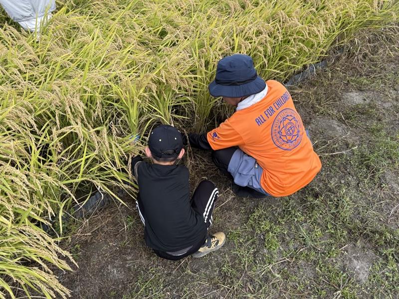 鎌を使って手作業で稲刈りをする貴重な体験ができました。