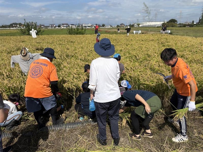 10月5日(日)に、おやじ俱楽部主催の稲刈り体験が行われました。