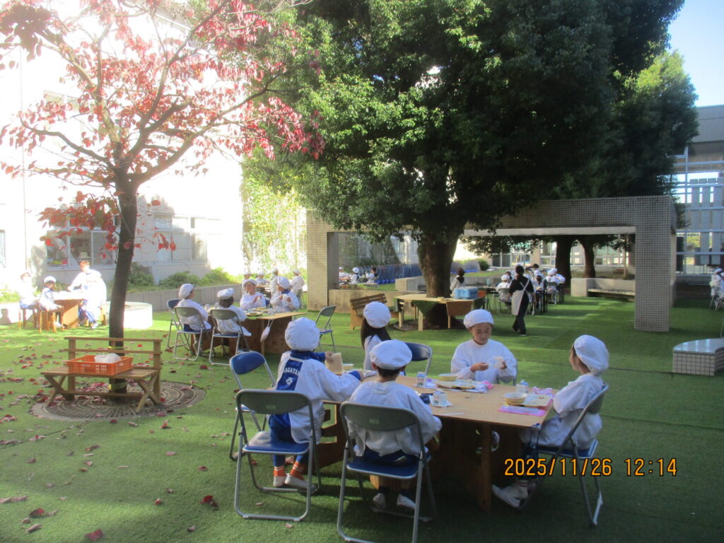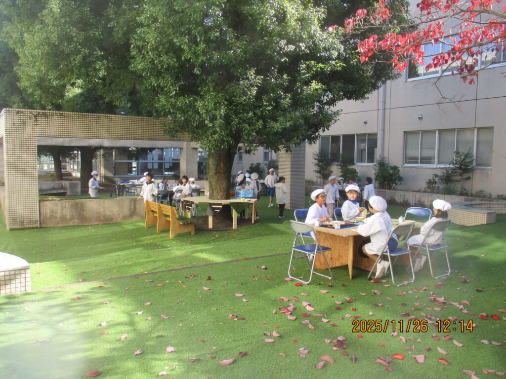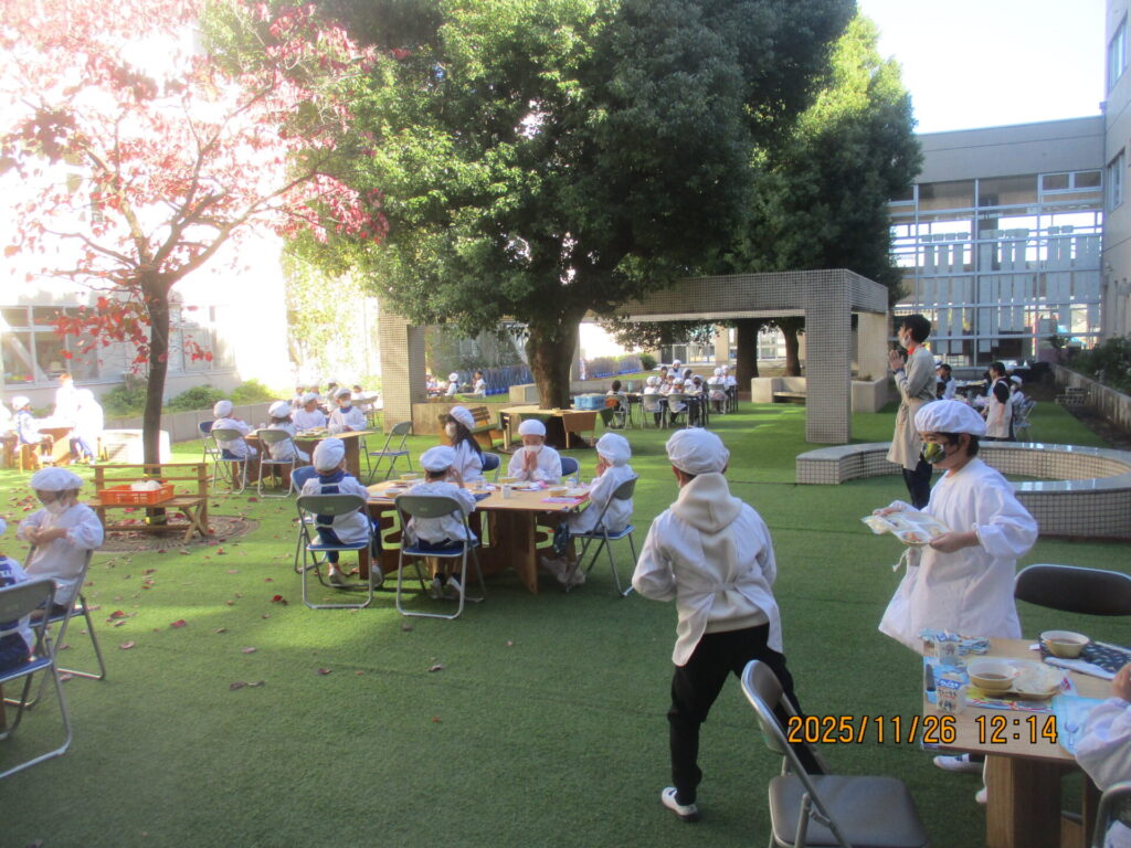 11月26日(水)には、4年1組と3年2組の児童が、わくわくガーデン給食を