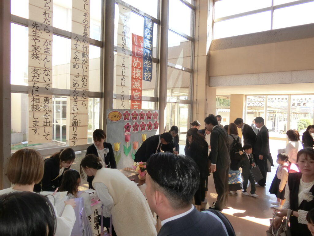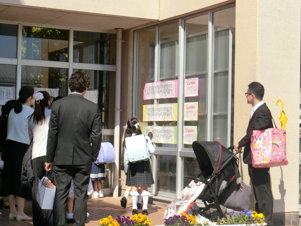 ぴかぴかのランドセルを背負い、少し照れた表情で保護者の方と一緒に学校の玄関をくぐる子どもたち。その小さな背中からは、新しい世界へ一歩踏み出す期待と、がんばろうとするまっすぐな気持ちが伝わってきました。